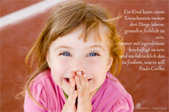 "Ein Kind kann einen Erwachsenen immer drei Dinge lehren: grundlos fröhlich zu sein, immer mit irgendetwas beschäftigt zu sein und nachdrücklich das zu fordern, was es will." Paulo Coelho
